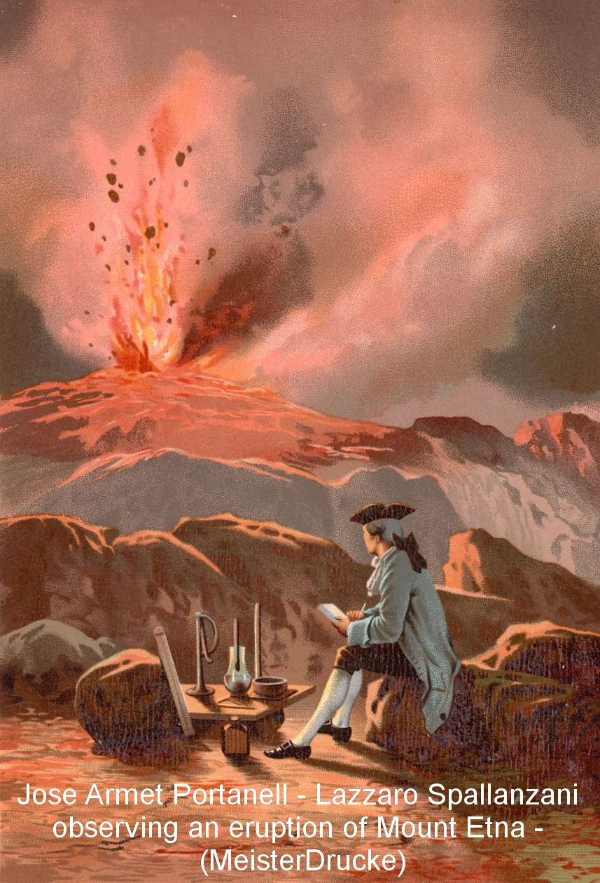 Con il titolo: Jose Armet Portanell, Lazzaro Spallanzani osserva un’eruzione del Monte Etna (particolare da MeisterDrucke)