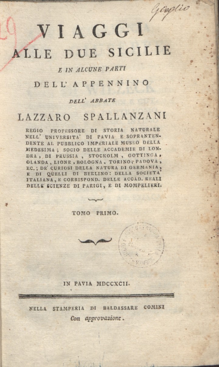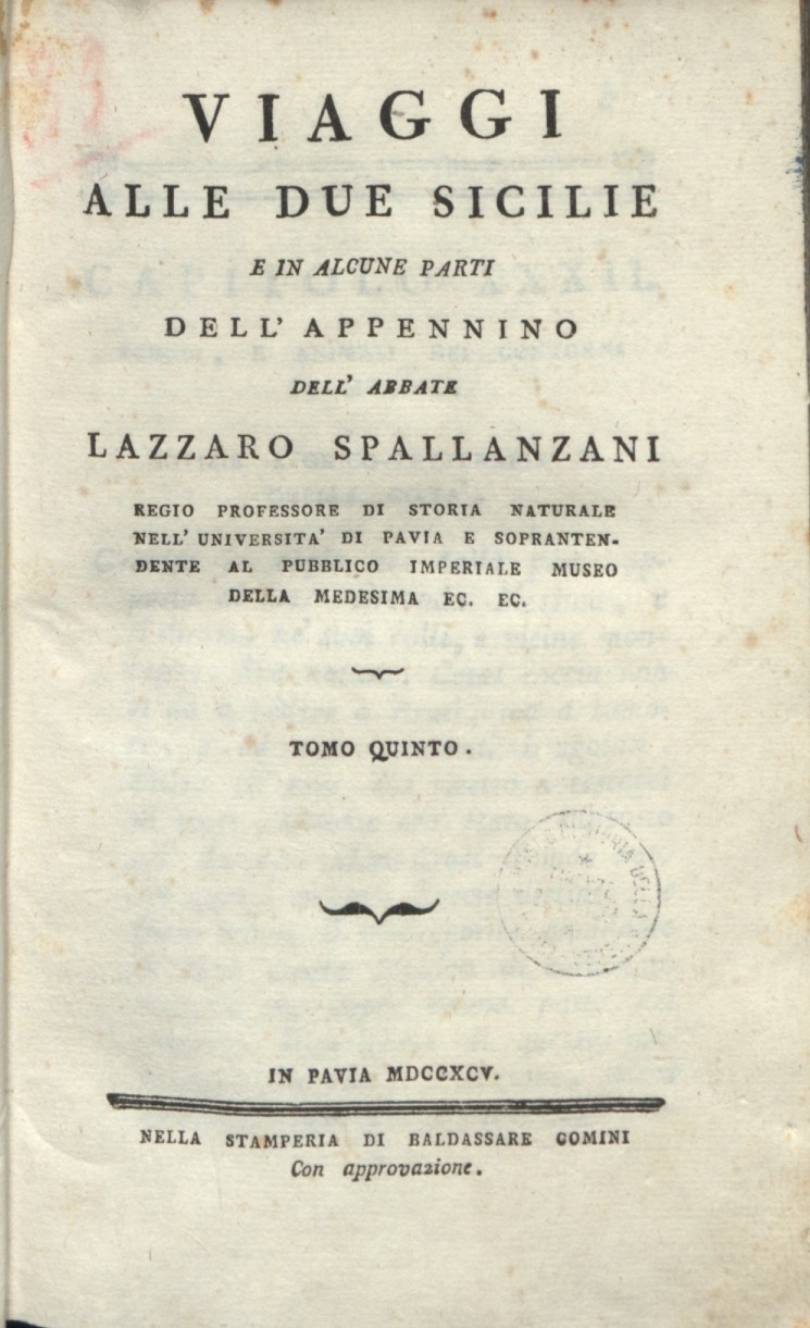 Il frutto delle sue osservazioni fu pubblicato a Pavia, in sei volumi, tra il 1792 ed il 1797, con il titolo Viaggi alle due Sicilie e in alcune parti dell’Appennino.