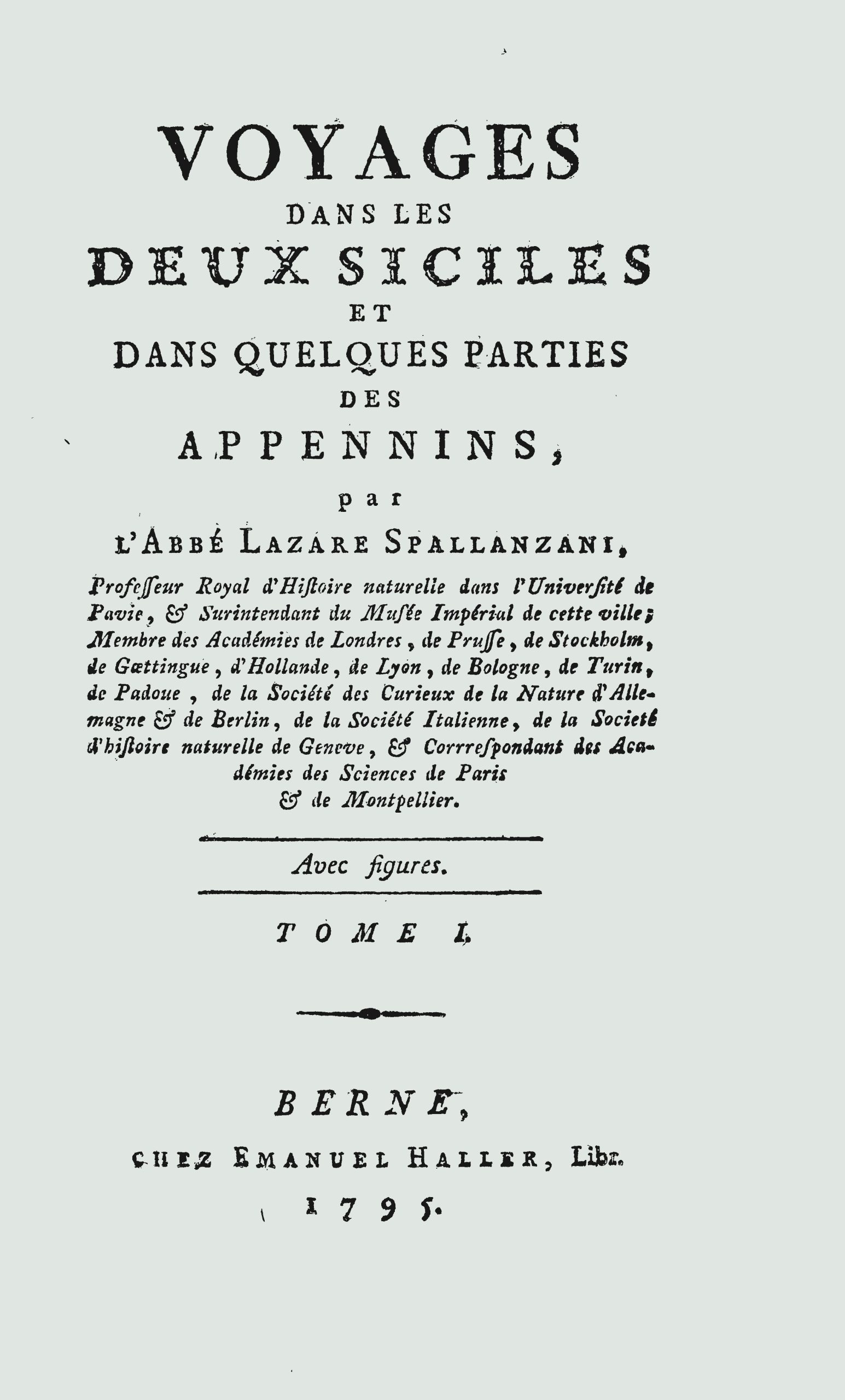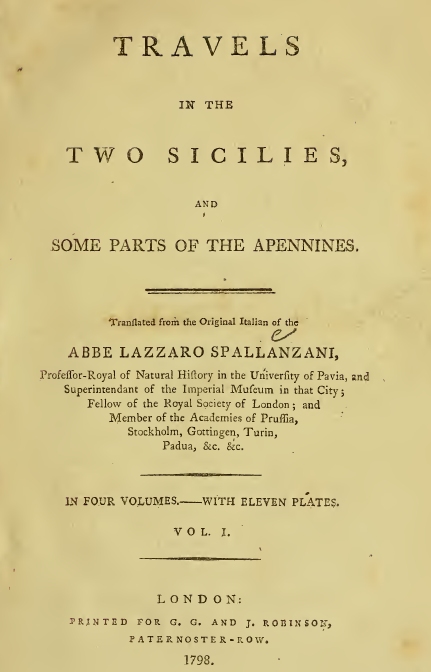 L’opera di Spallanzani fu pubblicata, oltre che in Italia tra il 1792 ed il 1795, anche fuori dai confini nazionali: nel 1795, a Berna, apparve Voyages dans les Deux Siciles et dans quelques parties des Appennins; nel 1798, a Londra, fu pubblicato Travels in the Two Sicilies and some parts of the Appennines e l’anno successivo, a Parigi, fu data alle stampe l’opera con lo stesso titolo di quella bernese.