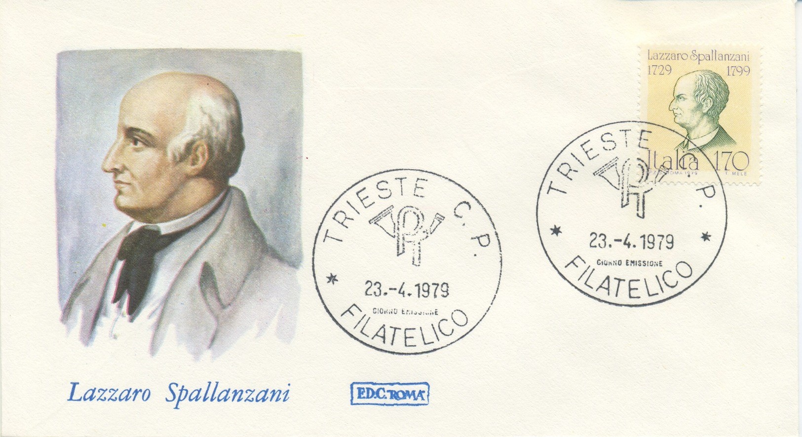 Nel 1979, nella ricorrenza del 180° anniversario dalla sua scomparsa, anche la filatelia ha voluto rendere omaggio allo scienziato, con l’emissione di un francobollo commemorativo e di una busta primo giorno di emissione (o first day cover):