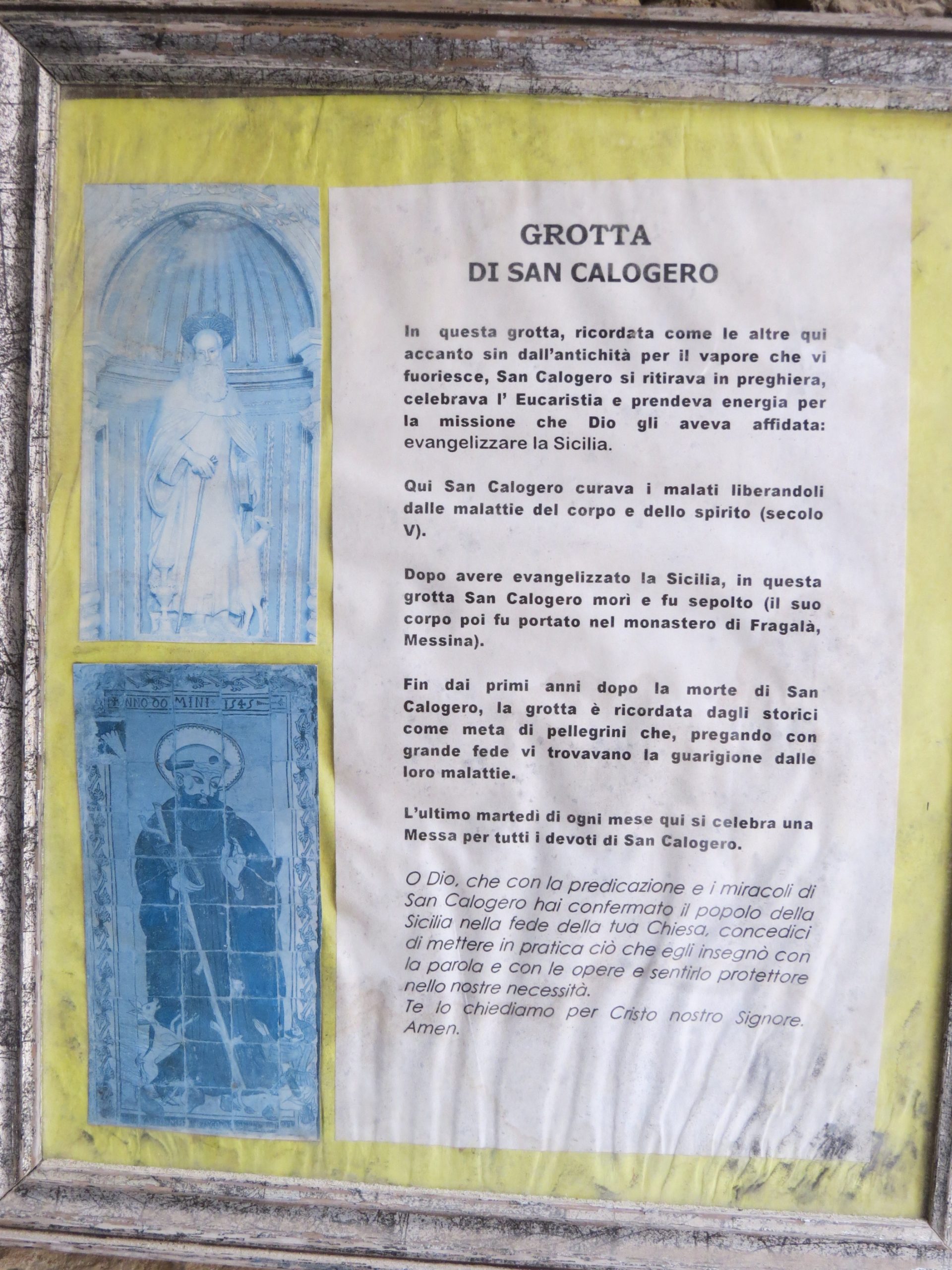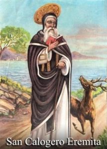 Si dice pure, secondo un’altra versione della sua storia, che Calogero sia arrivato in Sicilia dall’Africa settentrionale, per sfuggire alle persecuzioni a cui erano soggetti i Cristiani. Originario della regione greca di Calcedonia, non visse nel primo secolo bensì tra il 466 ed il 561 d.C.; rifugiatosi sul Monte Kronio, presso Sciacca, guarì numerosi infermi con l’ausilio delle acque termali lì presenti.