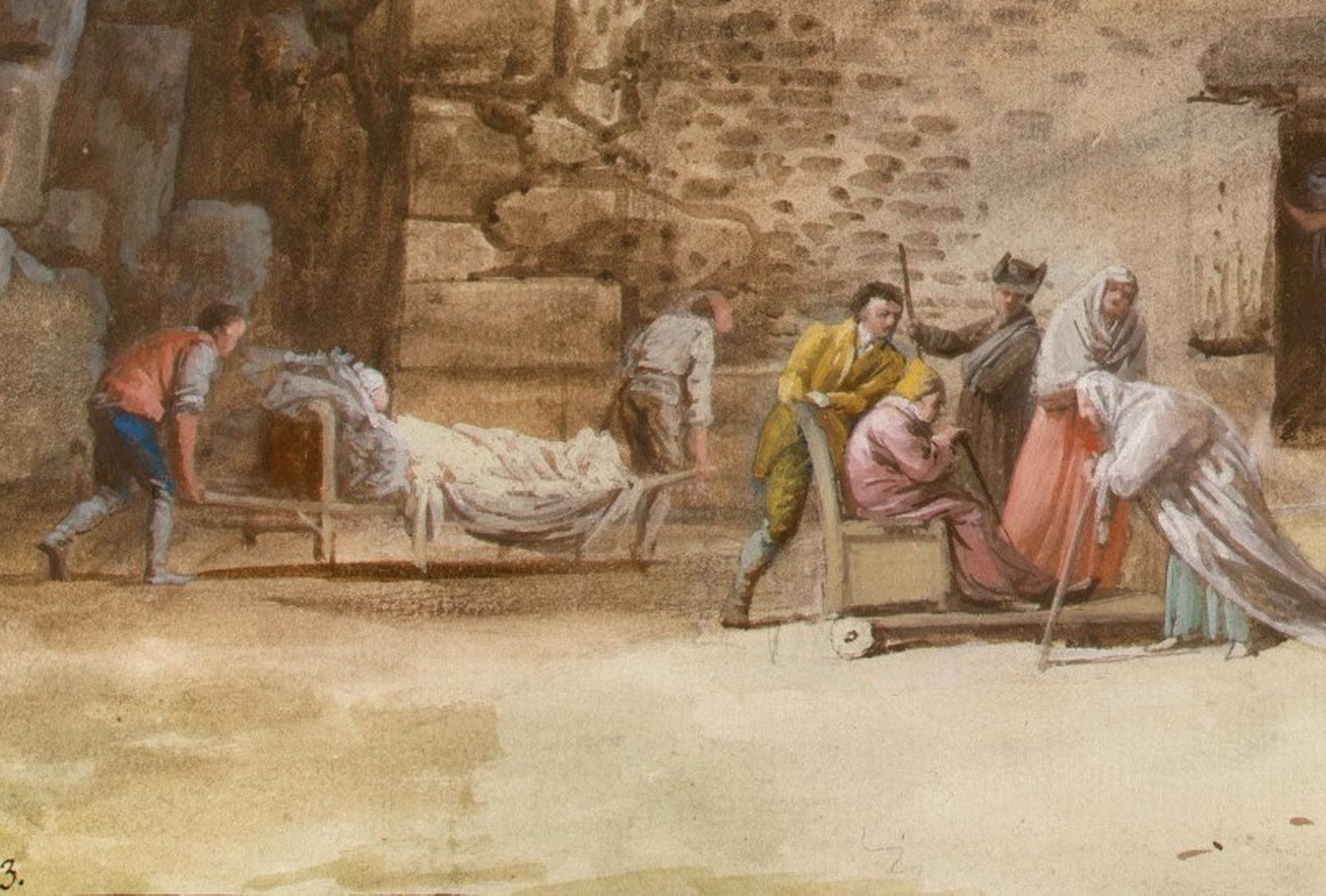 Tra il 1776 ed il 1779 il pittore del Re Jean-Pierre-Laurent Hoüel realizzò una serie di disegni preparatori per le incisioni da inserire nell’edizione del Voyage pittoresque des isles de Sicilie, de Malte et de Lipari i cui volumi furono poi pubblicati a Parigi dal 1782  al 1787. La famosa illustrazione di Hoüel mostra chiaramente il principale utilizzo delle acque termali delle stufe liparote, quello terapeutico: vengono raffigurate infatti delle figure di infermi che, autosufficienti o meno, fruiscono del calore dei vapori che si sprigionano dalla terra in un ambiente la cui struttura ricorda l’architettura micenea, facendo anche uso di un locale di servizio adiacente.